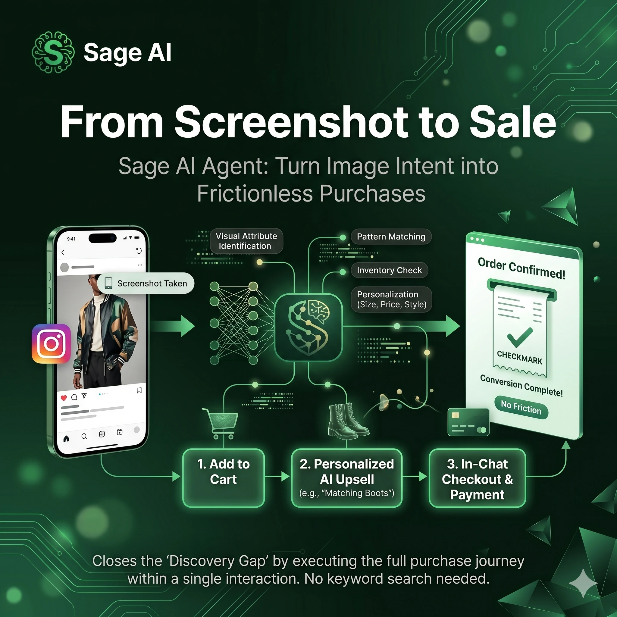 - The Sage Advantage: Sage executes the full purchase journey from image intent to checkout within a single interaction, delivering higher conversion rates and reduced drop-offs.